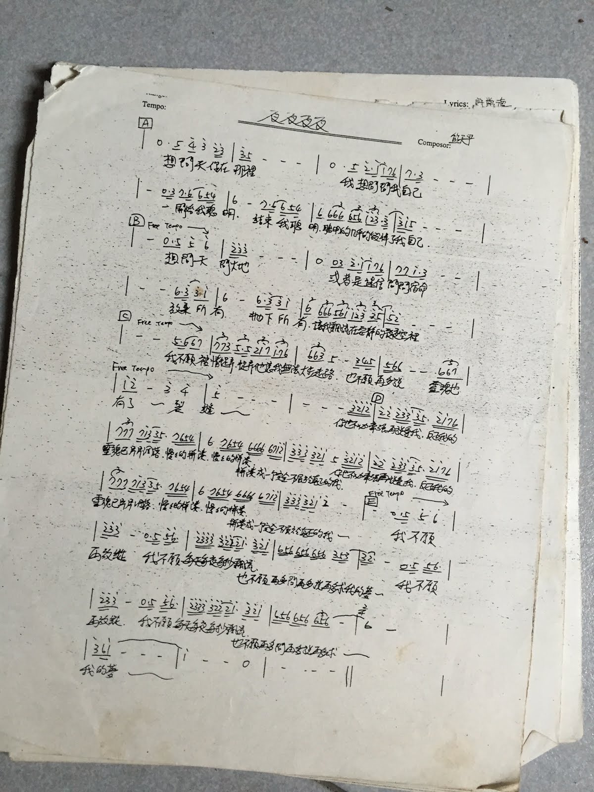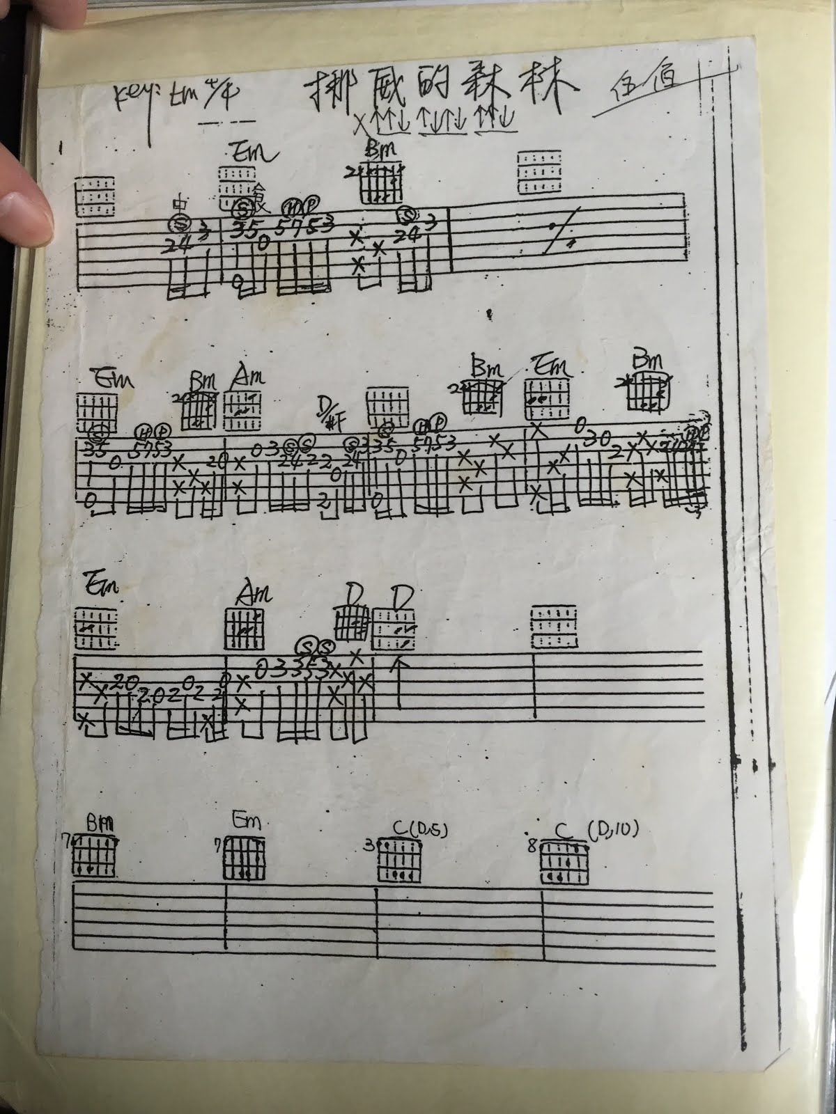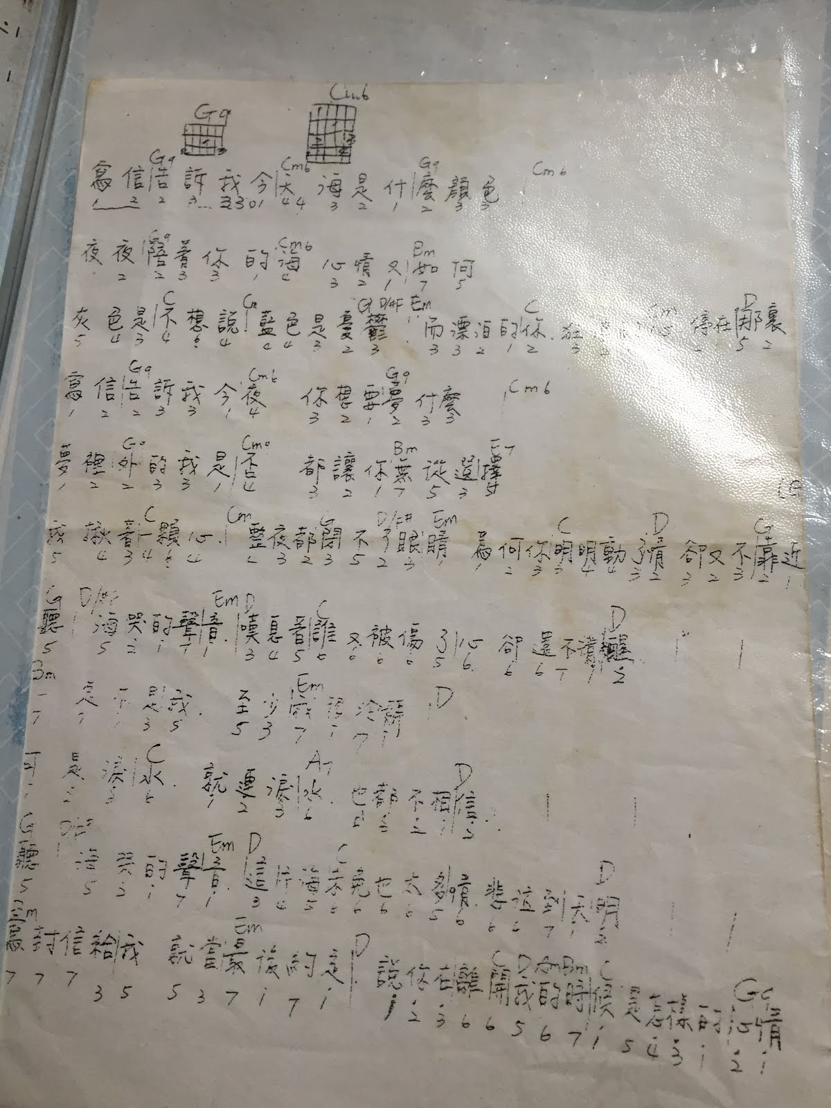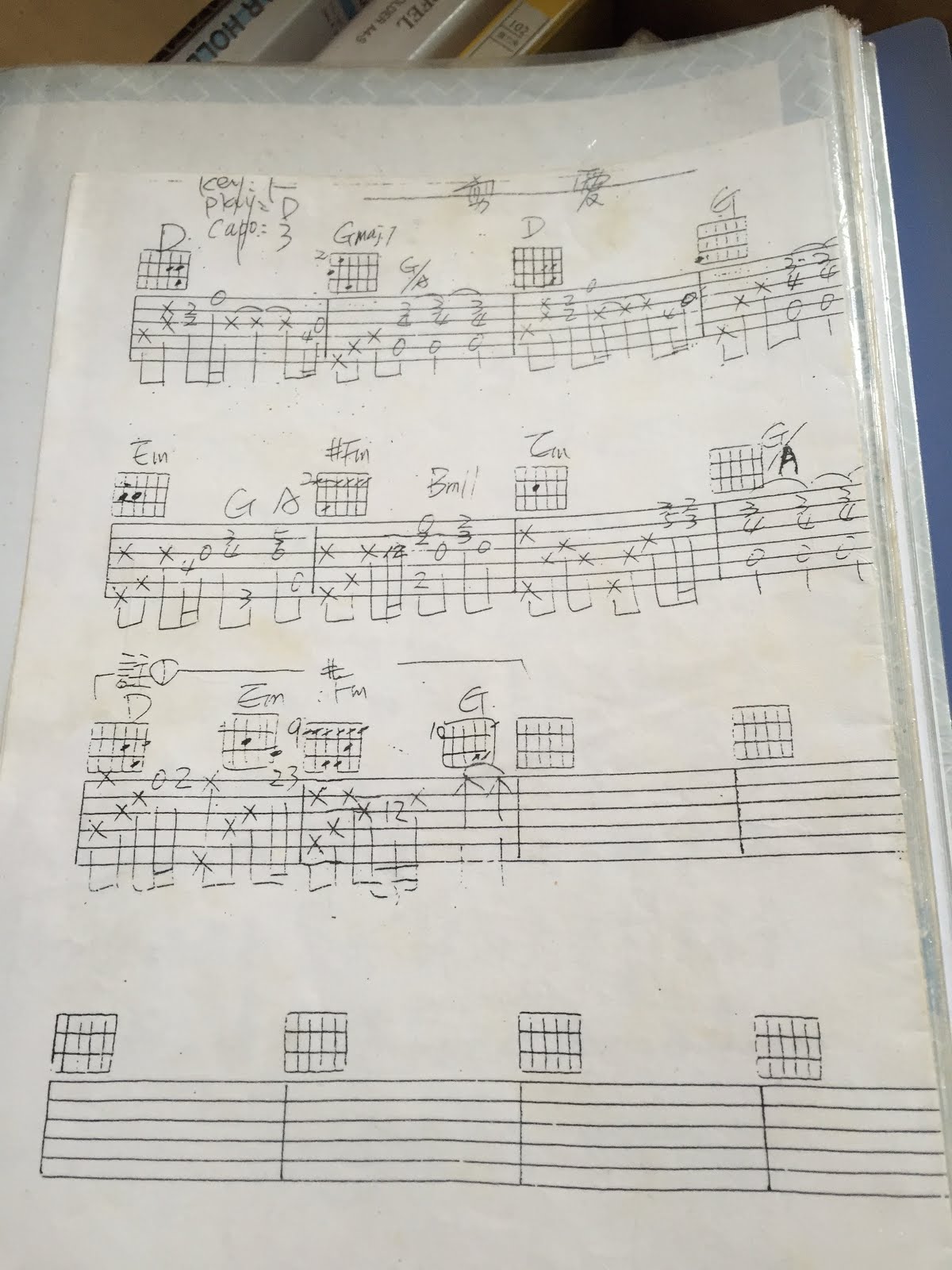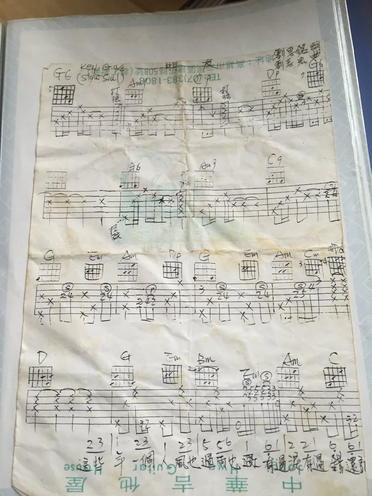 用手機隨手拍了一些以前的譜,有些是「鏘」來的,有些則是自己練習採譜後手寫紀錄的。這些每一首歌,都有一段記憶,背後可能是一段故事。這些譜一筆一畫的字跡,比起網路上隨意 google 來的譜,更是珍貴。