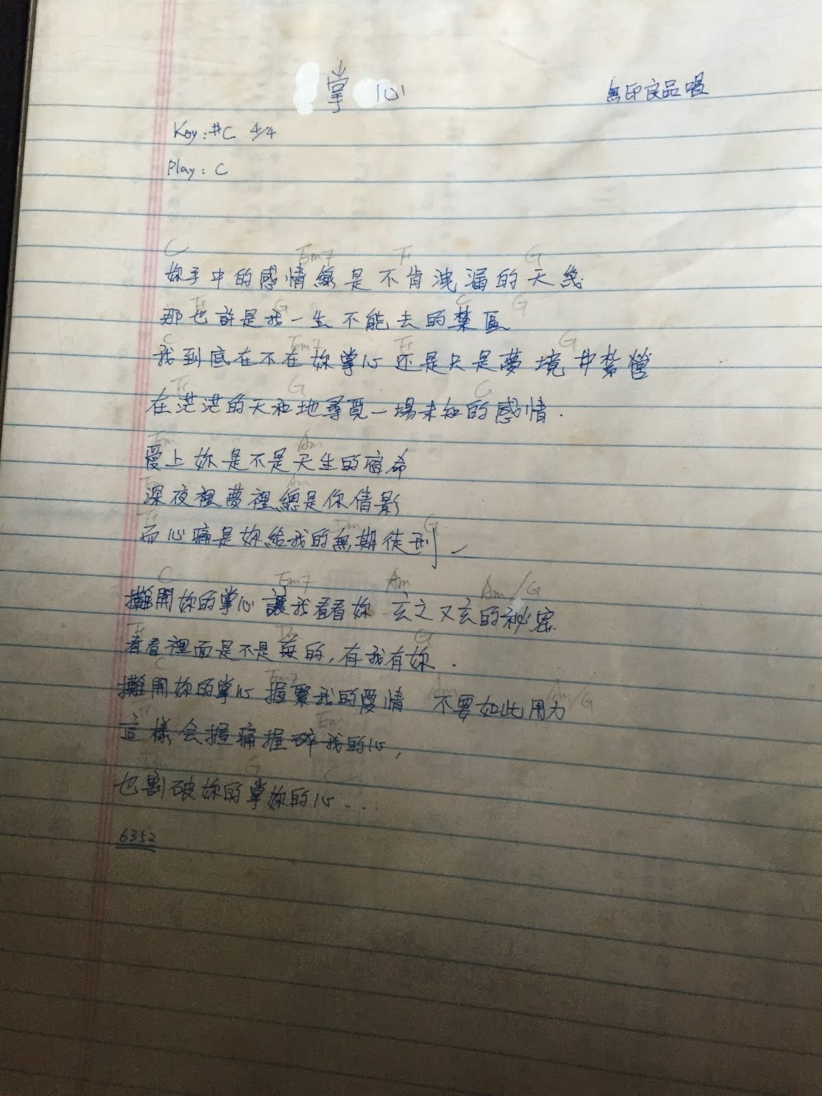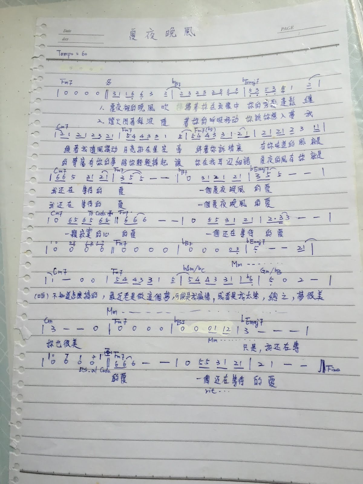 這首 你的眼睛 是當時很紅的歌曲,正在學琴的時候,練習採譜必要的曲子。