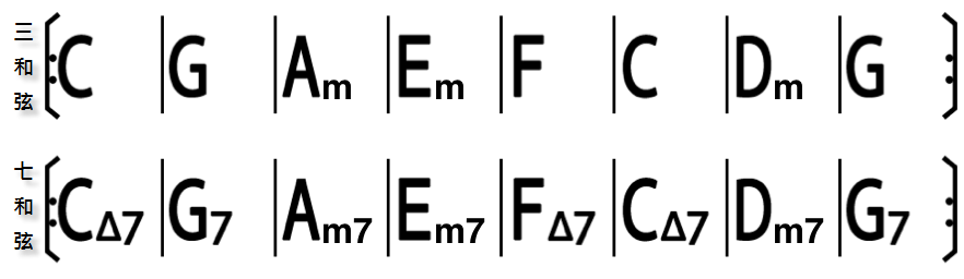 基本應用二: 把順階三和弦換成順階七和弦