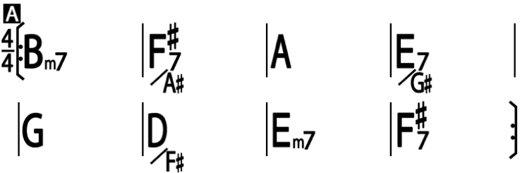 整首歌,頭尾來看,可以得知是 B 小調,對應的主要屬和弦是 F#7。歌曲當中出現了另一個屬七和弦 E7,我們把它看成是某個調的屬七,剛好 E7 前面是 A,兩者剛好是 I - Ⅴ 的關係,所以 E7 我把它解釋成歌曲第一組 次屬和弦。